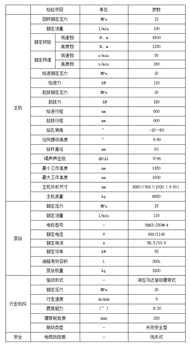 ZDY4500LPS煤礦用履帶式全液壓坑道鉆機參數(shù)表