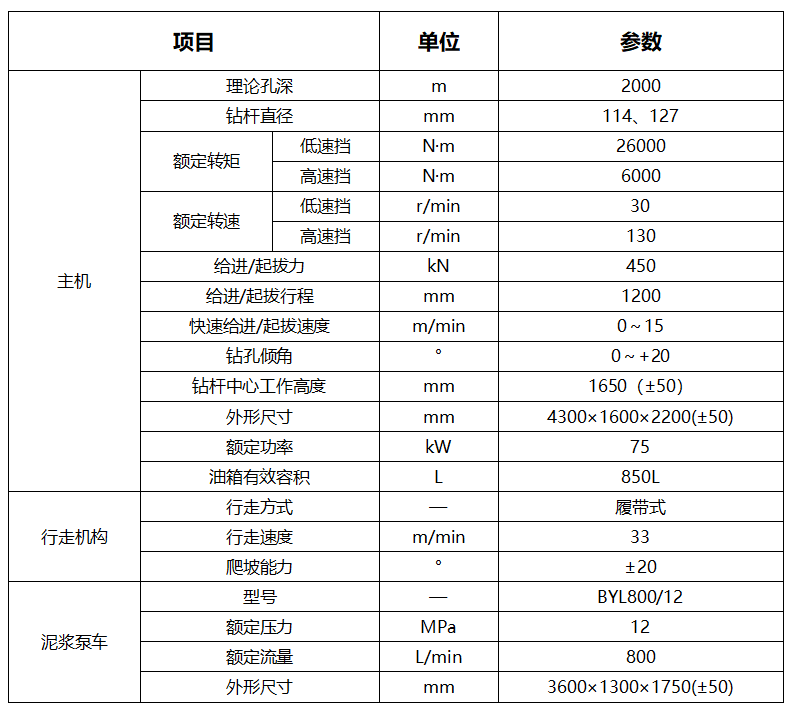 4、配套高壓超大流量泥漿泵車,最大流量800L/min;可選配1000L/min泵車。